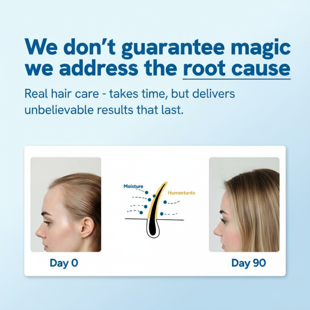 Experience noticeable improvement in hair thickness and reduced shedding within as little as two weeks. Our advanced plant-powered formula absorbs quickly at the root—stimulating growth, nourishing the scalp, and reviving thinning areas.