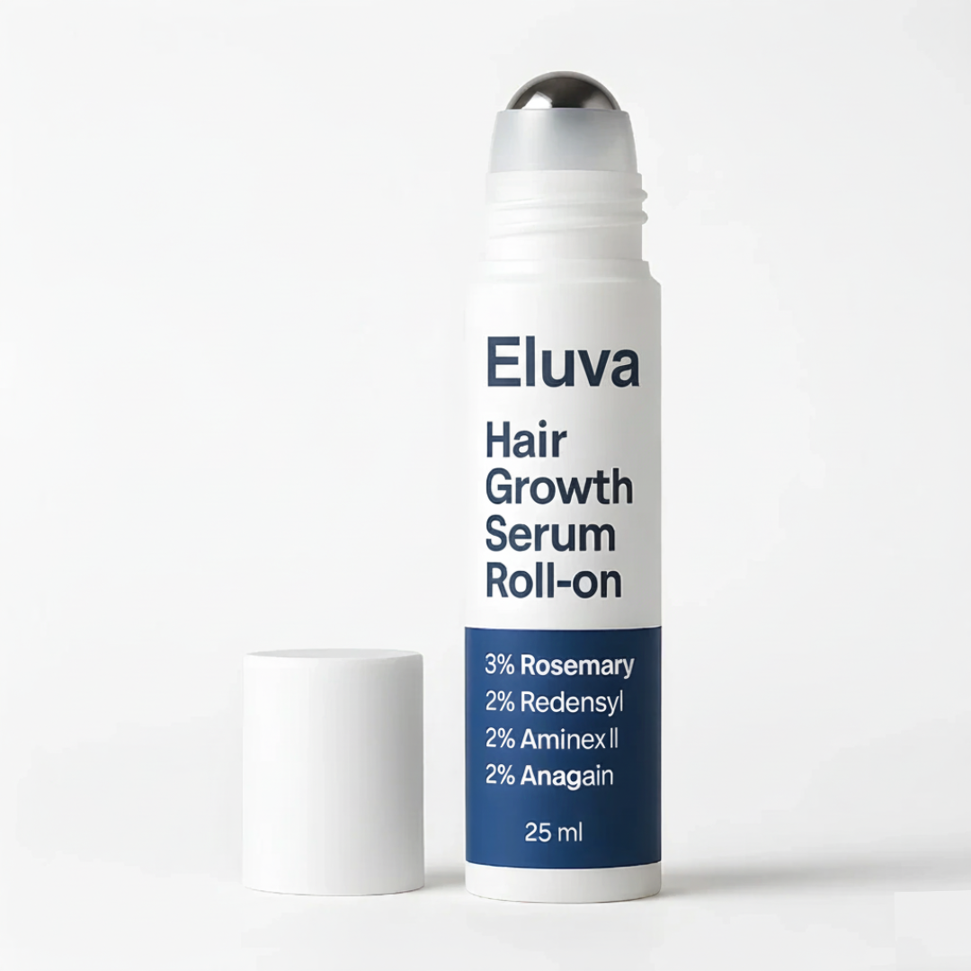 Eluva's Anagain™, and Rosemary work together to support thinning areas and keep your hairline looking fuller where it counts